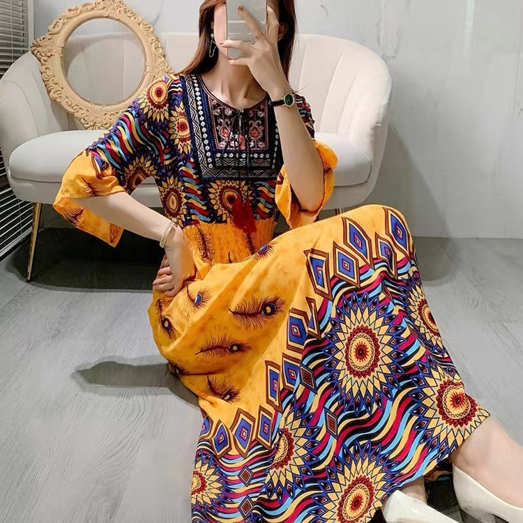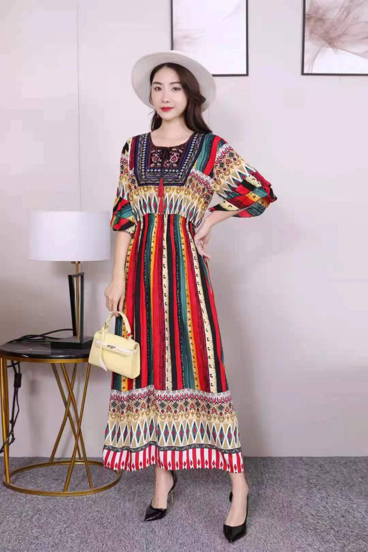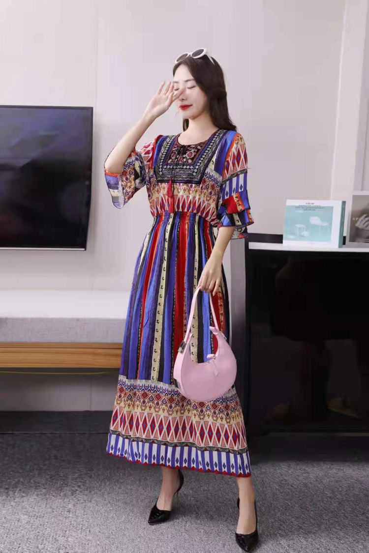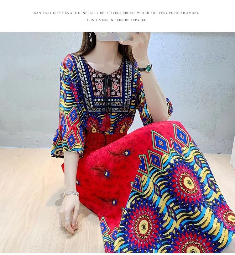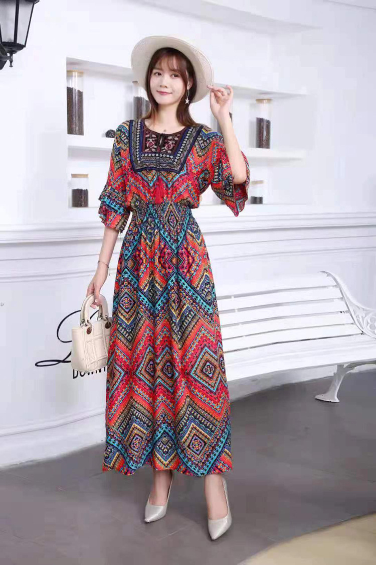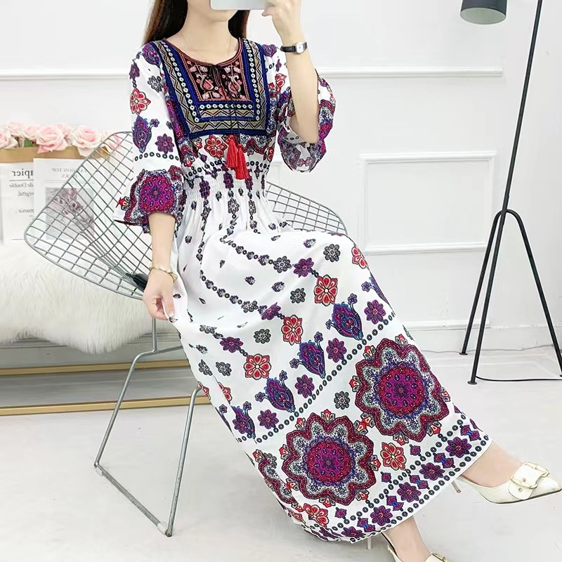 【ชุดเดรสกระโปรงแฟชั่นพิมพ์ลาย】ใส่สบาย ระบายอากาศ รูปแบบที่สวยงาม นุ่มน่าสัมผัส นุ่มและเป็นมิตรกับผิวหนัง สวมใส่สบาย เป็นอิสระ