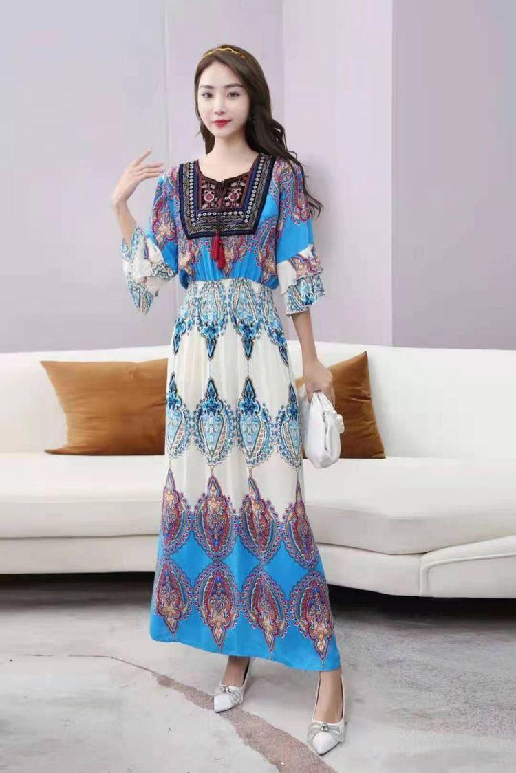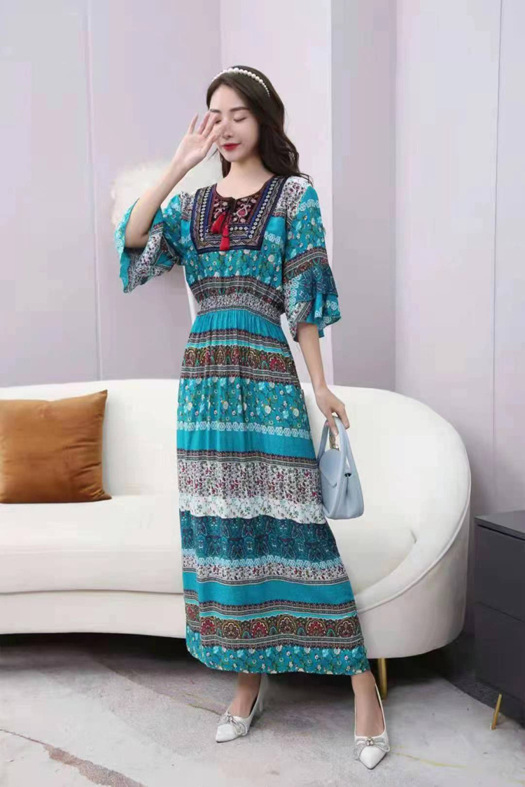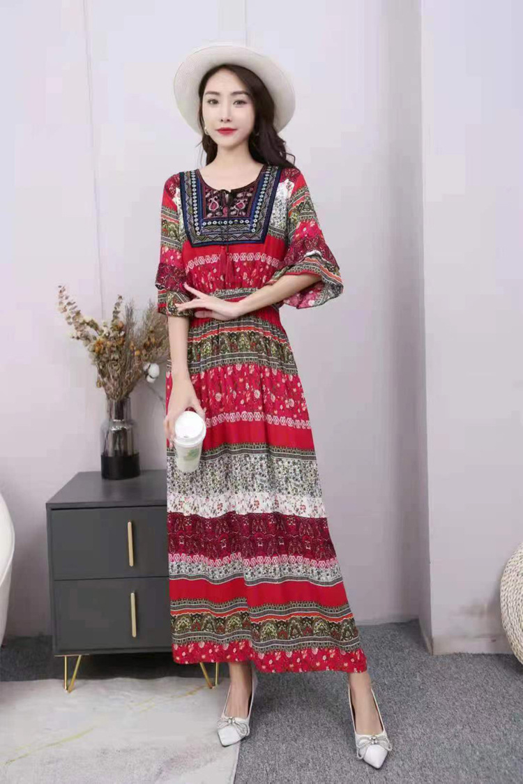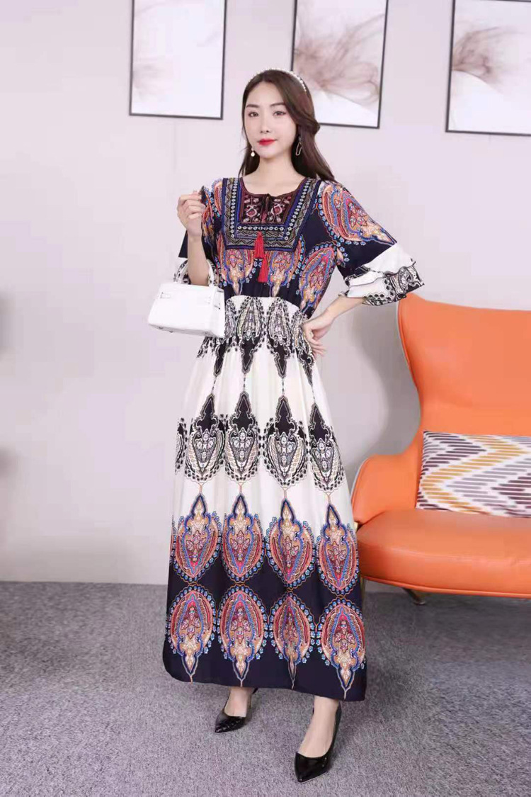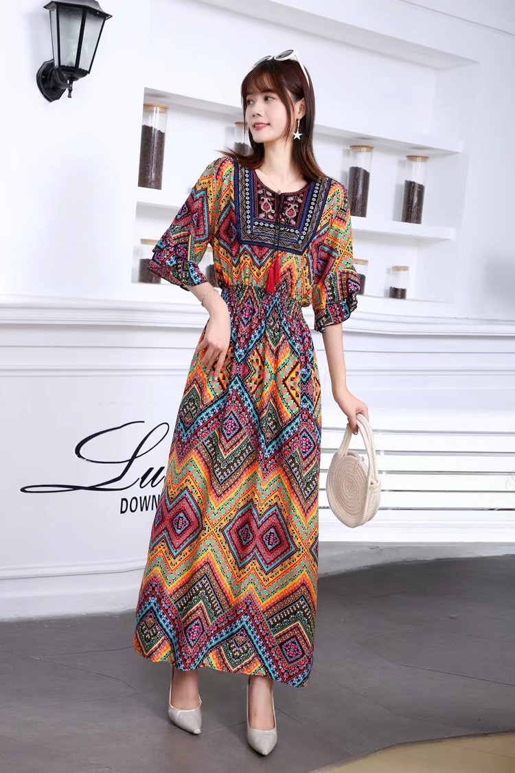 【ชุดเดรสกระโปรงแฟชั่นพิมพ์ลาย】ใส่สบาย ระบายอากาศ รูปแบบที่สวยงาม นุ่มน่าสัมผัส นุ่มและเป็นมิตรกับผิวหนัง สวมใส่สบาย เป็นอิสระ